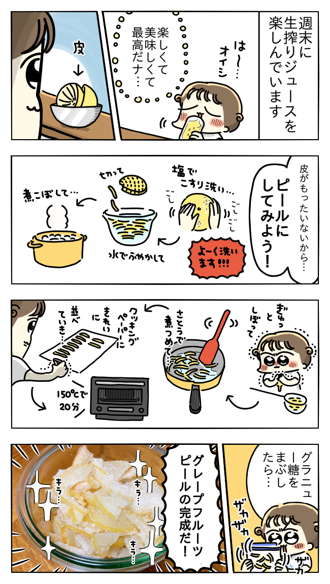 ほろ苦くて甘くてとっても美味しいグレープフルーツピールができました!わーい(⌒▽⌒)